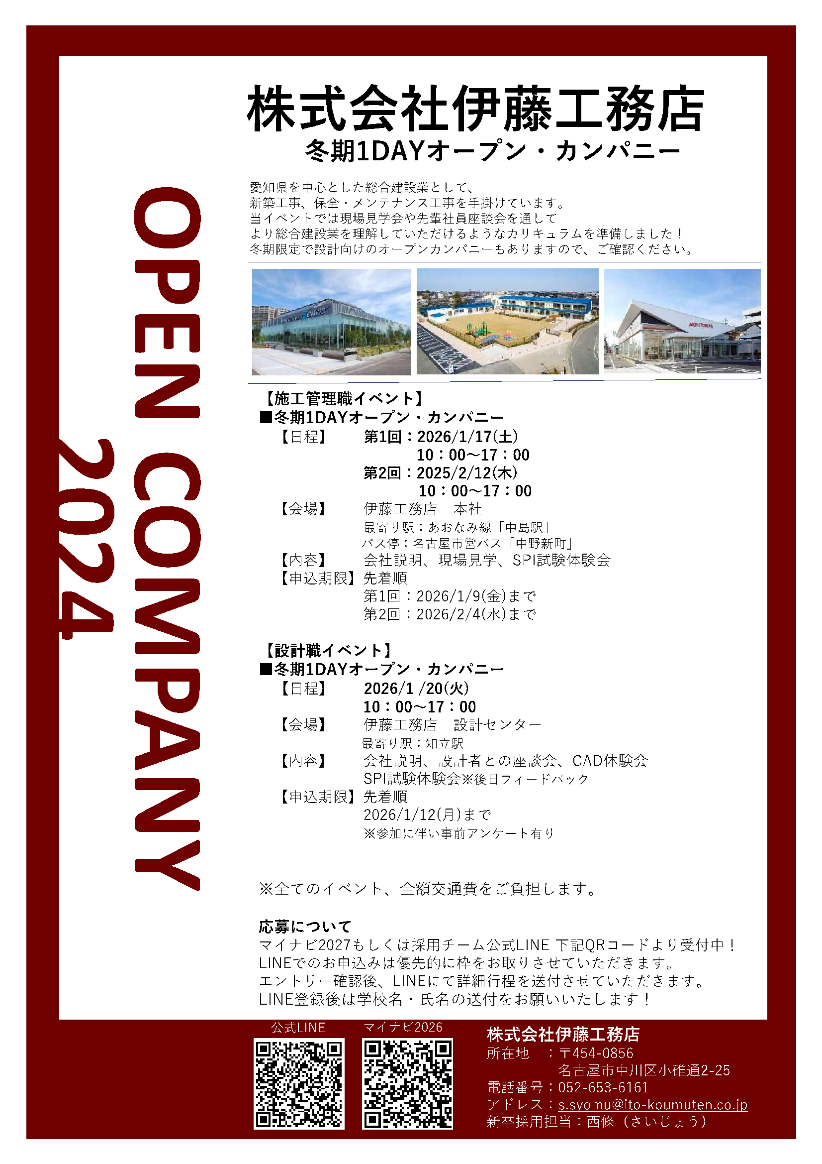 【27卒採用イベント】冬期オープンカンパニー(施工・設計) エントリー受付中!